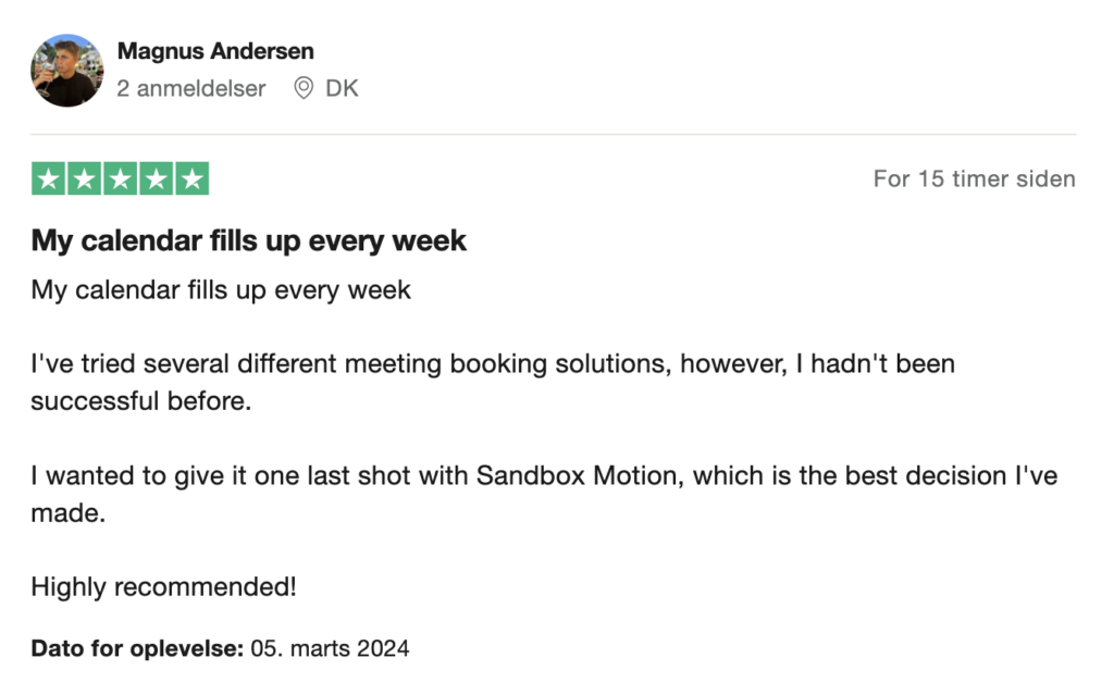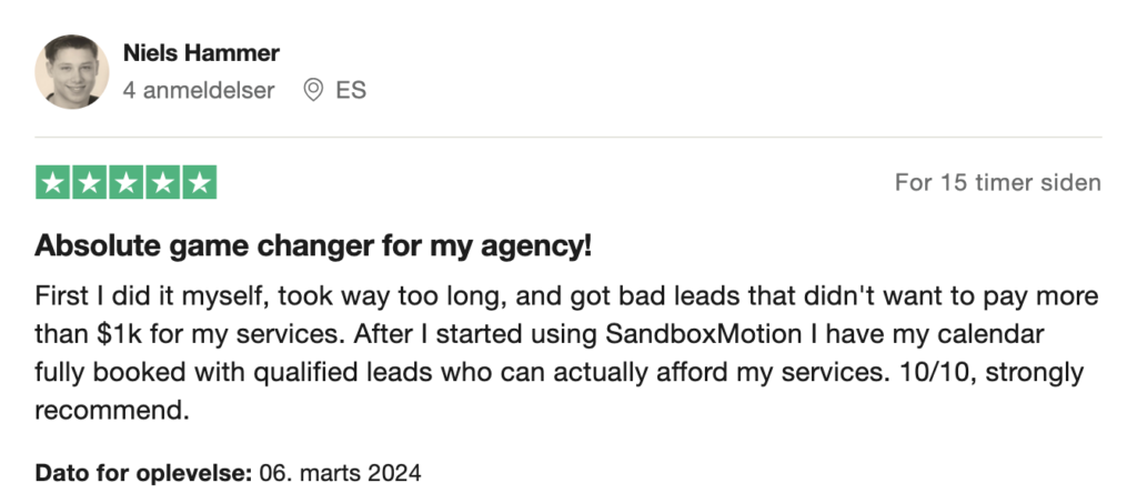 We focus on sales, and not appointments. We do not see a reason to book 20-30 unqualified meetings a week if only 2 turns into clients.